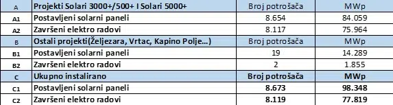 Da bi analiza bila korektna, daćemo tabelu, šta su to do sada uradile EPCG i njena ćerka firma EPCG-Solar-Gradnja.