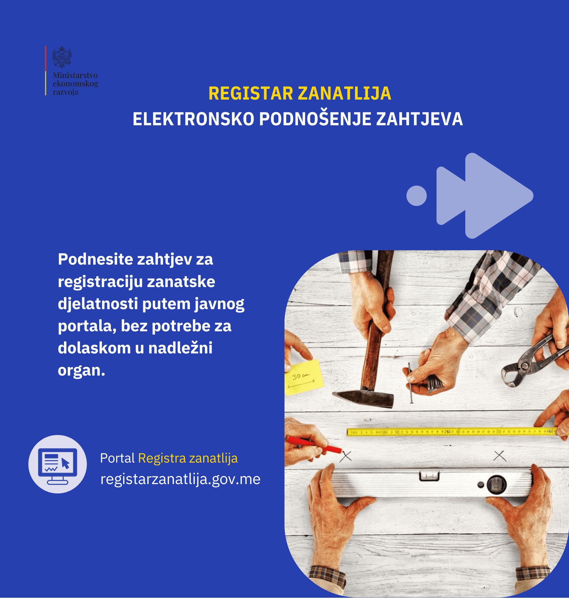 “Registar zanatlija predstavlja javnu, elektronski vođenu bazu podataka o zanatlijama koji obavljaju djelatnost na teritoriji Crne Gore, sa ciljem uspostavljanja jedinstvene, centralizovane i ažurne evidencije u oblasti zanatstva. Zanatlije su dužne da u roku od tri mjeseca od dana uspostavljanja Registra podnesu prijavu za upis Zanatskoj komori Crne Gore”, naveli su iz resornog Ministarstva.