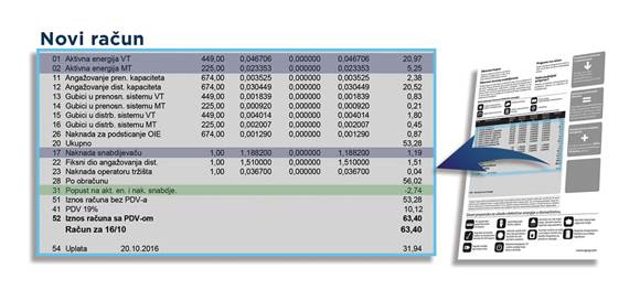 Elektroprivreda Crne Gore (EPCG) će nastaviti da na računima za utrošenu električnu energiju obračunava popust od pet, odnosno 10 odsto za svoj proizvod i usluge, a to se odnosi na preuzetu aktivnu energiju i naknadu snabdjevaču.