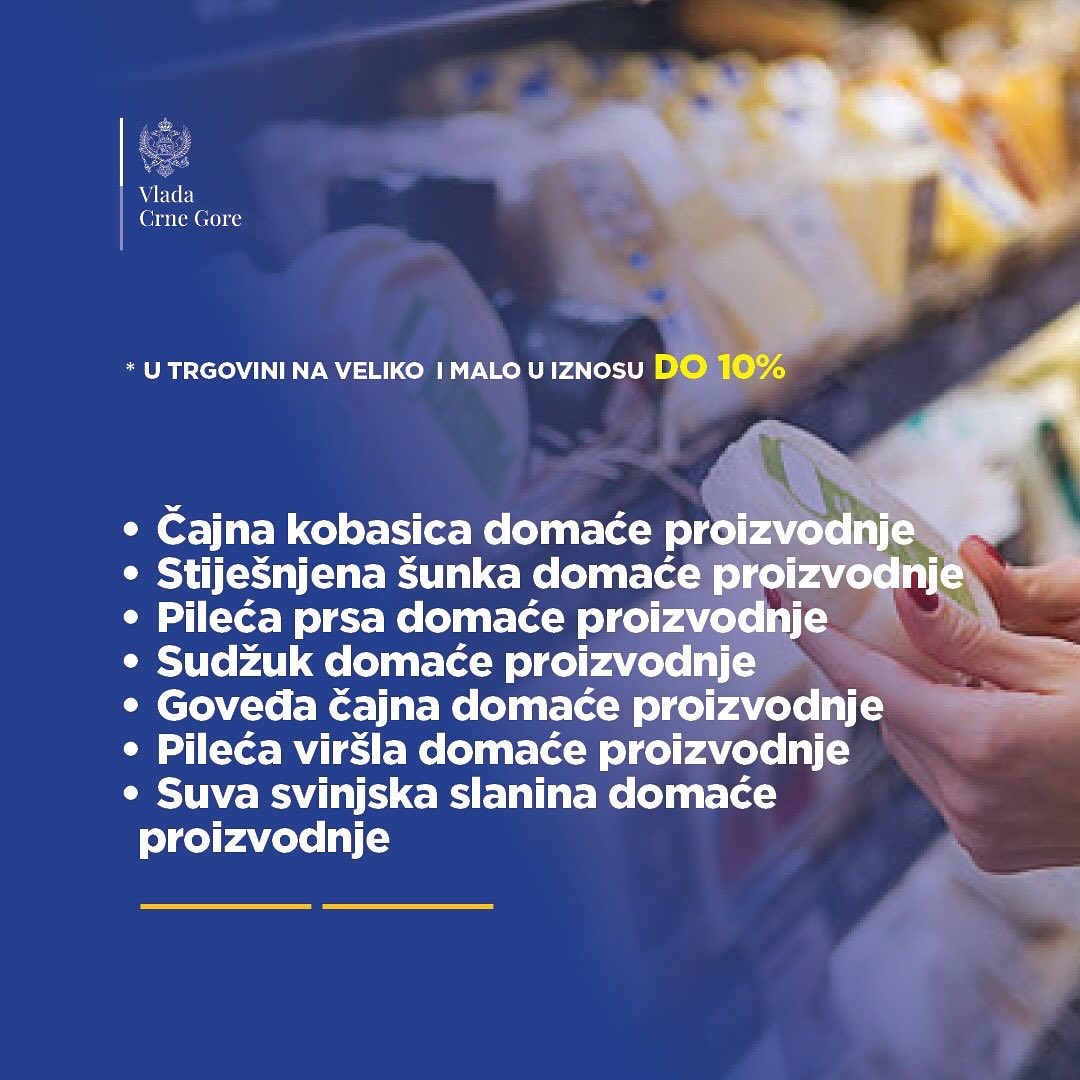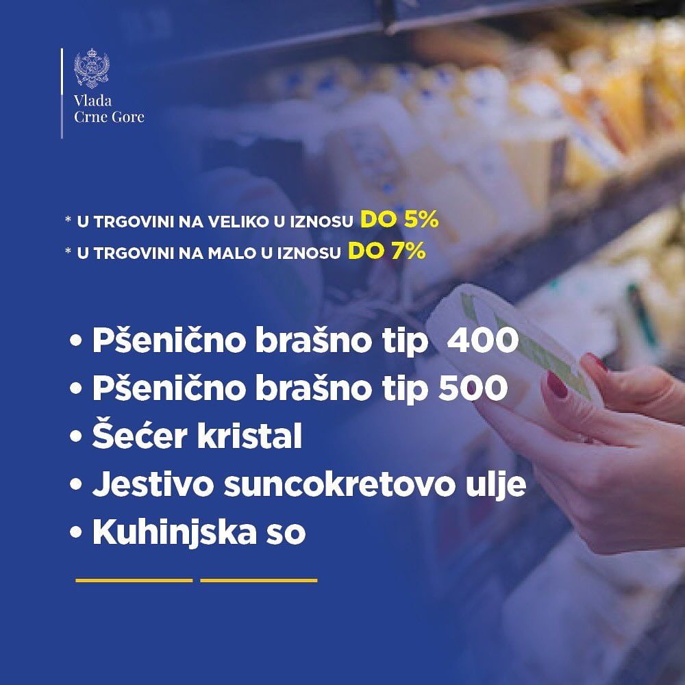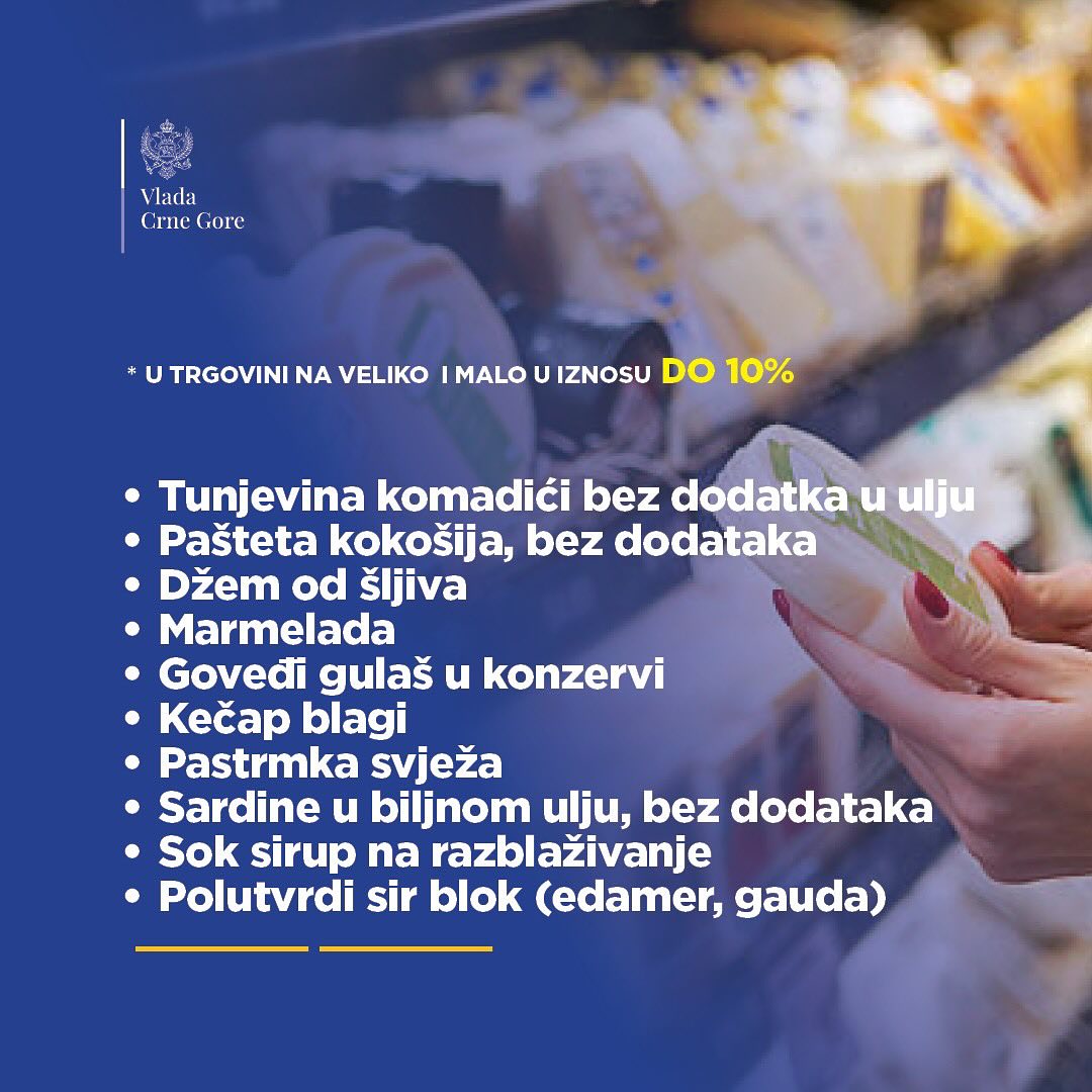 Vlada Crne Gore objavila je spisak proizvoda čije će cijene biti snižene ili ograničene.