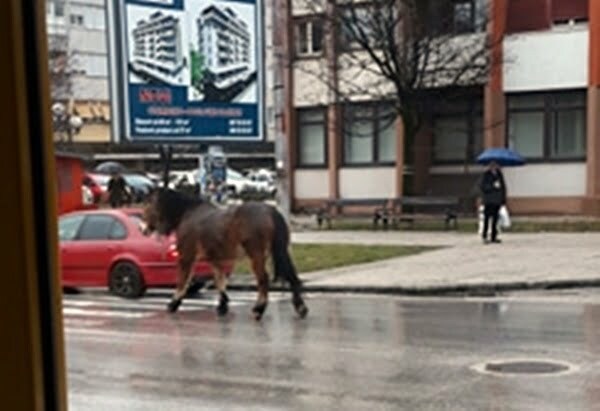 U Ulici Nikole Tesle danas oko 9h nastala je mala pometnja u saobraćaju zbog konja, koji se našao na samoj ulici.