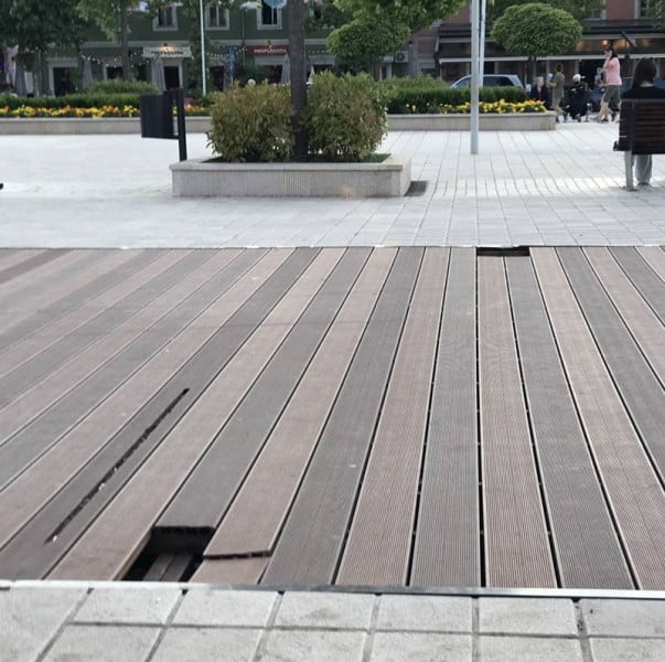 FOTO: Polomljen plastični mobilijar na Trgu čeka popravku