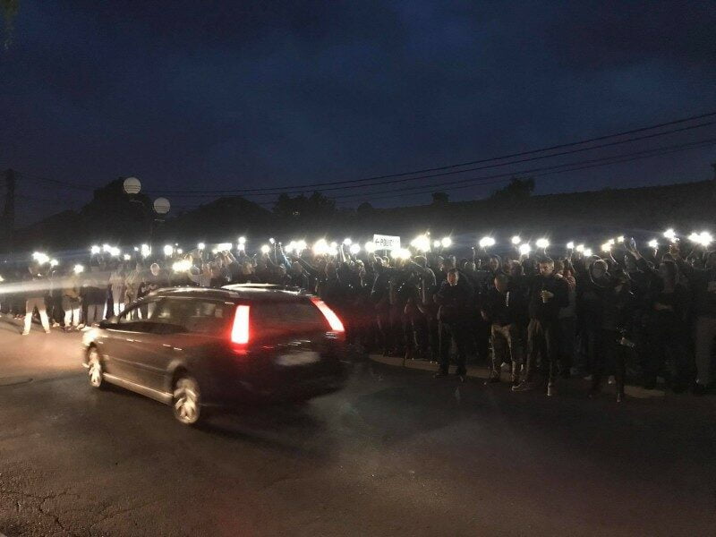 U jednom trenutku kordonu policije prišle su djevojčice, među kojima su bile i kćerke sveštenika Slobodana Jokića, i podijelile bukete crvenih ruža.