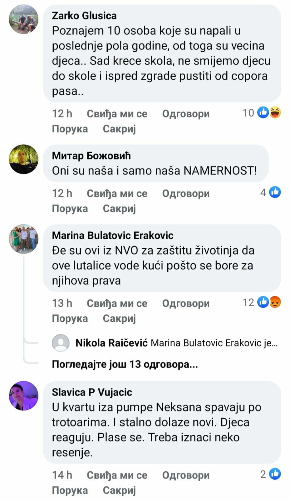 Dok su jedni ogorčeni i navode da je slična pojava po gotovo svim naseljima u Nikšiću i brinu za djecu, drugi štite životinje navodeći da je pisanje o ovom problemu, koji su nam upravo čitaoci predočili, huškanje.