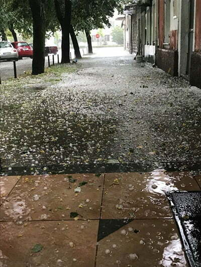 Jako nevrijeme zahvatilo je danas oko podne naš grad. Obilna kiša i vjetar miješali su se sa gradom koji je padao oko sat vremena i tako pričinio veliku materijalnu štetu oštetivši bašte i njive.
