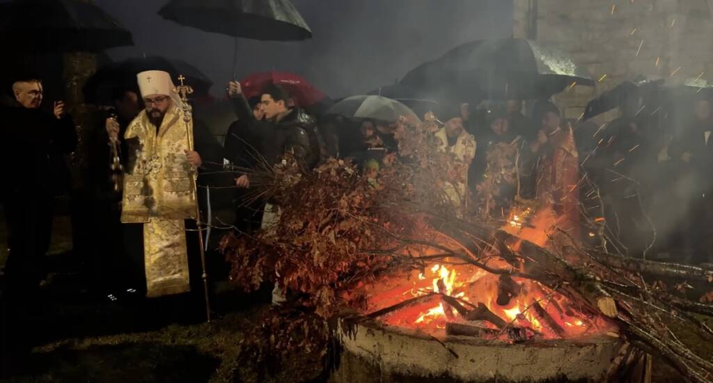 Predstavnici Crnogorske pravoslavne crkve (CPC) večeras su ispred episkopskog dvora ljetnjikovca kralja Nikole u Nikšiću naložili badnjake.