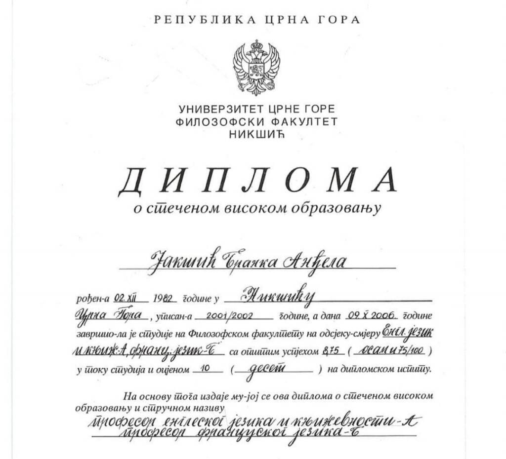 Diplome na uvid javnosti su date za ministarku Anđelu Jakšić-Stojanović, državnog sekretara Dragana Markovića, te državnih sekretara Tatjane Ćalasan i Fikreta Lulanaja.