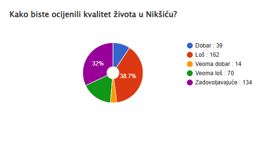 Rezultati ankete pokazuju da većina mladih u Nikšiću nije zadovoljna kvalitetom života u svom gradu. Od ukupno 419 ispitanika, čak 232 smatra da su uslovi loši ili veoma loši, dok je samo 53 ocijenilo život kao dobar ili veoma dobar.