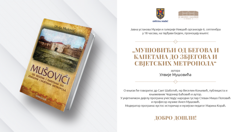 Promocija knjige "Mušovići od begova i kapetana do zbjegova i svjetskih metropola" autora Ulvije Mušovića biće organizovana večeras, od 18 časova, na tvrđavi Bedem.