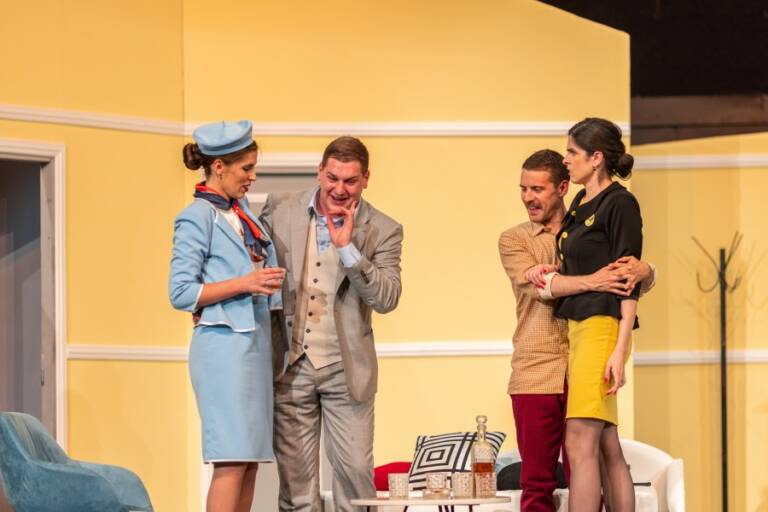 Predstava Nikšićkog pozorišta „Boing-boing“, koju je po tekstu Marka Kamoletija režirao Rastislav Ćopić, biće izvedena večeras na sceni Nikšićkog pozorišta, sa početkom u 20 časova.