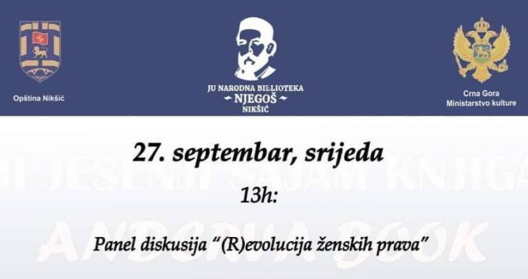 U holu Nikšićkog pozorišta danas, sa početkom u 13 časova, a u okviru završnog dana III Jesenjeg sajma "Anderva book", biće upriličena Panel diskusija na temu: "(R)evolucija ženskih prava".