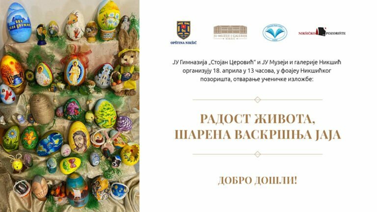U foajeu Nikšićkog pozorišta, sa početkom u 13 časova, biće otvorena izložba radova učenika Gimnazije „Stojan Cerović“ pod nazivom "Radost života, šarena vaskršnja jaja“.