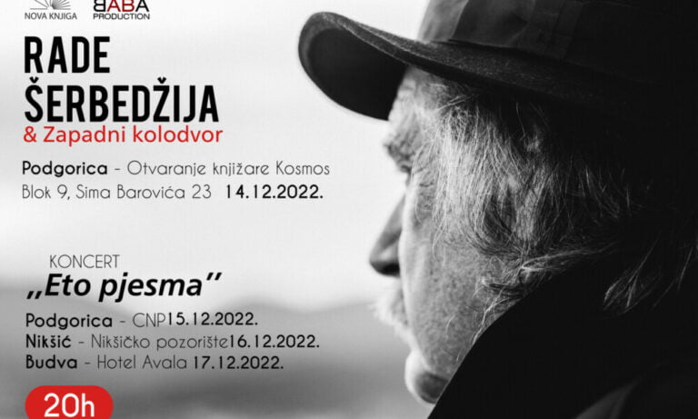 Rade Šerbedžija će ove godine na poziv svoje izdavačke kuće "Nova knjiga" biti gost Crne Gore kojom prilikom će otvoriti knjižaru Kosmos u bloku 9, 14. decembra u Podgorici nakon čega će biti organizovana promocija njegove poslednje knjiga "Poslije kiše", druženje sa medijima i čitaocima i potpisivanje. Prilikom ove posjete Crnoj Gori Rade Šerbedžija će imati i nekoliko koncerata.