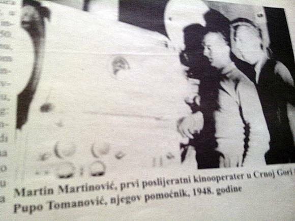 „ Odmah nakon rata počeo je sa radom putujući bioskop na nivou čitave države, a počelo je i obučavanje ljudi za prikazivanje filmova koje je vršio Rihart Njemac. Prvi kinooperater u Crnoj Gori bio je Martin Martinović iz Nikšića, koji je nakon obuke 1947. godine počeo sa prikazivanjem filmova u Domu Kulture“, navodi on.