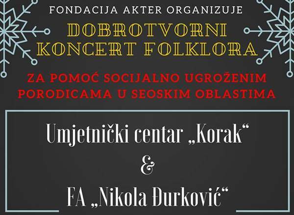 Na Sceni 213 večeras će, sa početkom u 19 časova, u organizaciji Fondacije "Akter" iz Podgorice, biti održan Humanitarni koncert folklornih ansambala.