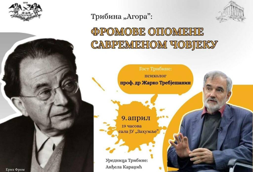 Razgovor na temu “Fromove opomene savremenom čovjeku” sa njim vodiće urednica tribine Anđela Karadžić.