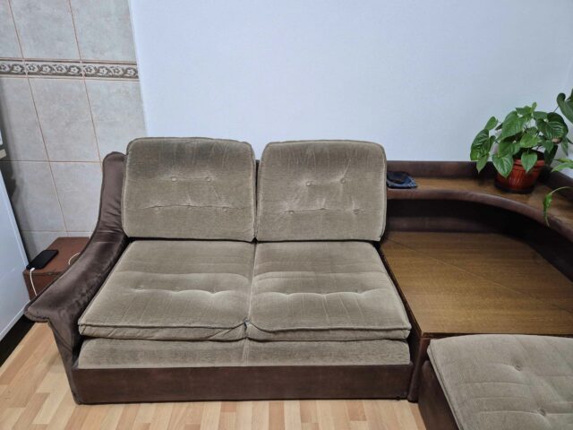 Povoljno prodajem garnituru. Sastoji se od trosjeda (ima ležaj), dvosjeda (ima kasetu za odlaganje stvari) i fotelje. Garnituru spaja ugao koji služi kao mini šank koji se po potrebi otvara. Dimenzije garniture su 225×285. Cijena po dogovoru!