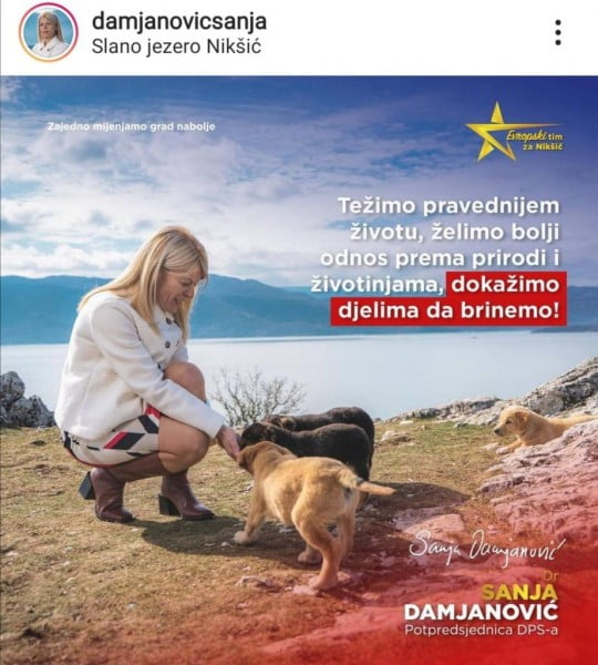 Bivša ministarka nauke Sanja Damjanović prije dva dana na svom Instagram profilu pohvalila dijelom DPS programa za Nikšić u kojem je istakla “Program zaštite napuštenih pasa” koji je i po naslovu i po sadržaju gotovo identičan programu liste “Crno na bijelo”, kazali su iz pomenute liste.