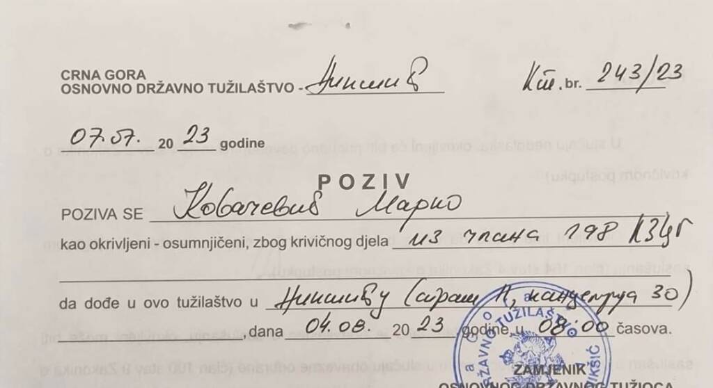 Tužilaštvo je podnijelo krivičnu prijavu protiv njega zbog sumnje da je povrijedio ugled Crne Gore.