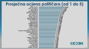 Bivši ministri finansija i ekonomskog razvoja, Milojko Spajić i Jakov Milatović, najbolje su ocijenjeni političari u Crnoj Gori, nakon kojih slijede lideri Demokrata i DPS-a, Aleksa Bečić i Milo Đukanović, te bivši premijer Zdravko Krivokapić To je pokazalo junsko istraživanje javnog mnjenja koje je sproveo CEDEM. Istovremeno, DPS ima najveću podršku građana, nakon kojeg slijede Demokrate, DF, te nedavno formirani Pokret Evropa sad.