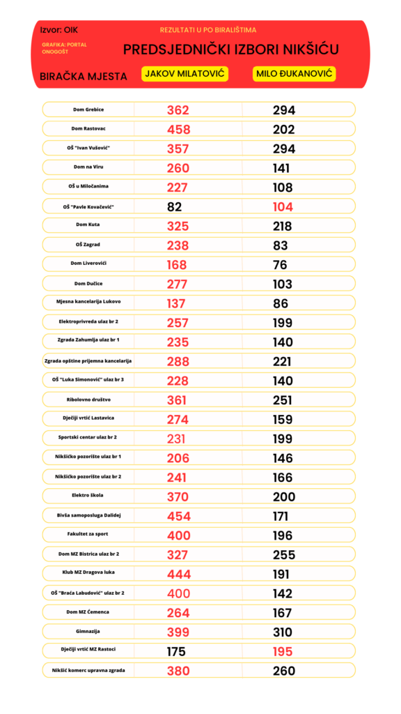 U nastavku smo izdvojili kako su naši sugrađani glasali na 76 najvećih biračkih mjesta, prema preliminarnim rezultatima Opštinske izborne komisije.