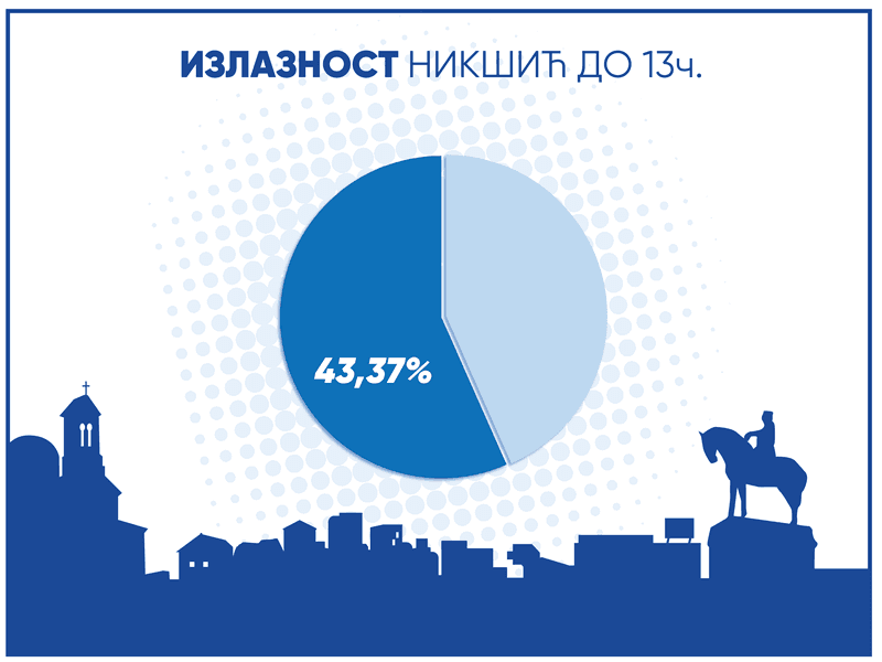 13.11 h Iz “Demokrate – Svi smo Nikšić” saopštili da je izlaznost do 13 časova 43,37 odsto.
