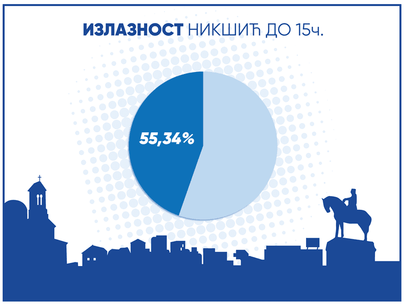 15.09 h Prema podacima liste “Demokrate – Svi smo Nikšić” izlaznost na nikšićkim izborima do 15 časova je 55,34 odsto.